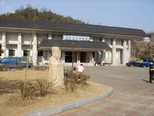 | 入り口の土産物屋さんで売っていたお面。アンドンならではのお面。 | 民族村の隣に建っている立派な博物館。儒教に関する展示が多い。 |