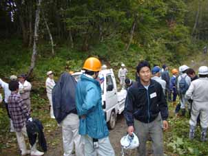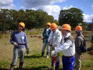 | 西木村担当者から作業の説明が行われた。 | 植樹の実演と説明が行われた。 |