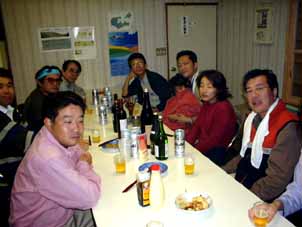 | 大ちゃんはたこ焼き効果でもてもて(^_^) | 何だか疲れた顔が並んでいますが、宴会の始まりです。 |