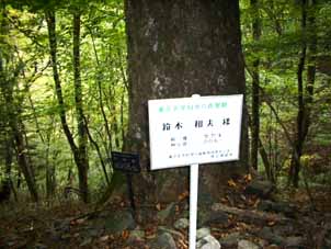 | さっそく見つけたきのこ、これはキララタケ。 | 演習林内の巨木に名前が付く里親制度。このケヤキは10万円。 |