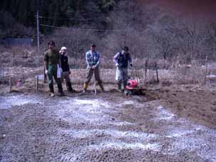 | 下の畑に勢揃いして耕耘を手伝う。 | しゃあさんも耕耘をする。 |