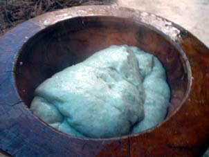 | ヨモギを摘んで草餅を作る。 | アンコ入り草餅。 |