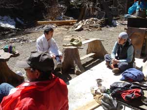 | 稲垣さんがキムチうどんを作ってくれた。これが絶品! | みんなで食べる。ツルリを入って体が暖まる。 |
