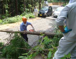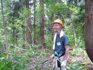 | 枝払いをしているたまくらさん。 | 原渓さん奮闘中。 |