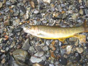 | 長南さんが最初のイワナを釣った。 | 私も釣った。でもこの1尾のみだった。 |