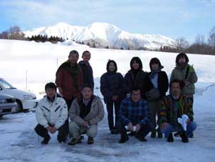 | アルパコマクサに集合した参加者。布谷課長も来てくれた。 | お風呂に入ってのんびり休む人あり。 |