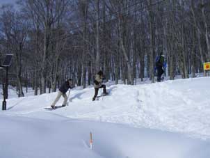 | スキーをする人、スノーシューで遊ぶ人あり。 | 天気が良くて快適なスノーシューでした。 |