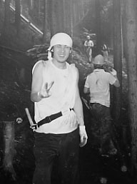 男性陣は雨の中でも元気いっぱい「イエ〜イ!」