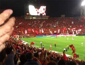 けて左足を振り抜き3点目。スタジアムは熱狂の渦になった。さらに攻め続けるレッズ