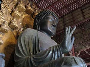 | 巨大な大仏殿。 | 中に入ると巨大な大仏が鎮座していた。 |