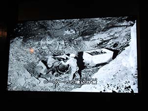 | 坑内エレベーターとも呼ばれるゲージが展示してあった。 | 映画の場面。鉱石の積み込みをしている。 |