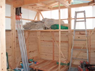 をやりました。雨が降っている間は納屋の棚作りをしました。
