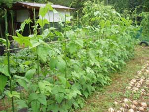 | カボチャの実が大きくなってきました。 | インゲンはツルばかり伸びて花が咲きません。 |