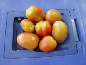 | やっとトマトの「アイコ」初収穫。 | 赤くなったものから鳥に喰われているようだ。 |