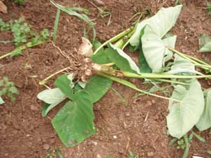 | 3分の一がやられたサトイモ畑。 | ズッキーニもなぜか一株やられた。 |
