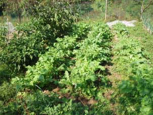 | 大根は順調に育っている。 | ピーマンは元気だが、トマトとナスは終わりか。 |