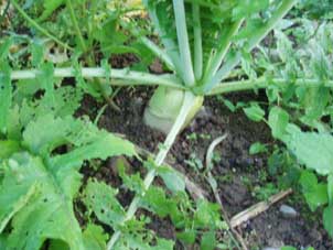 | 赤カブが順調に育っている。今日は7センチ間隔に間引き。 | ニンニクの植え付けをした。 |