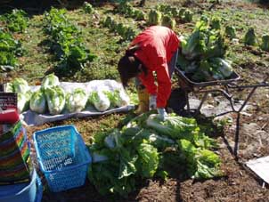 | 一陣の風が山から枯葉を空一面に飛ばす。まるで映画のよう。 | すっきりした白菜畝。 |