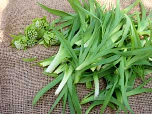 | ニラは来週くらいが食べ頃か。 | 畑の横の土手でカンゾウとフキノトウを採ってきた。 |