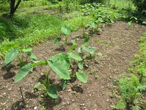 | サトイモが少しずつ大きくなってきた。今日は土寄せ。 | カボチャが大きくなってきた。そろそろ収穫か。 |