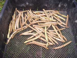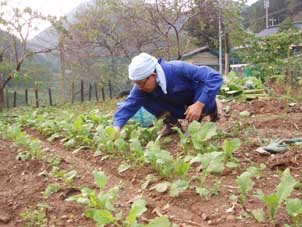 | 大滝インゲンは順調そのもの。 | 赤カブの間引きを終え、防虫剤を撒く。 |