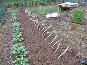 なった黒澤さんから頂いた「株ネギ」の畝作りと植え付け。落花生用地の施肥と耕耘。