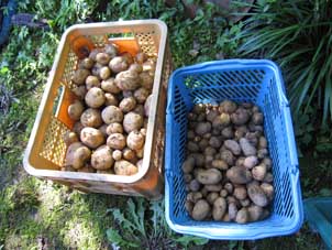 | 見渡せば畑はすっかり草の海になっている。 | 左が「キタアカリ」右が「インカの目覚め」。 |