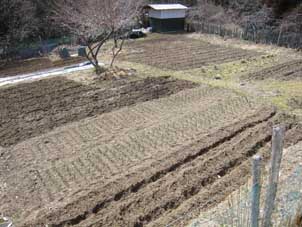 | ひと冬越して何もない畑。今日は全体を耕す。 |