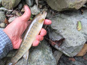 | さらに岩魚が釣れた。 | この岩魚で打ち止め。脱渓する。 |