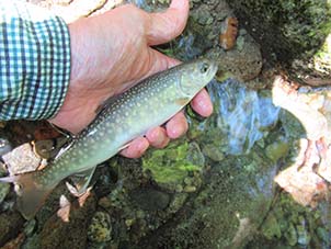 | 清冽な流れも目を休ませてくれる。 | いい型の岩魚が釣れた。 |