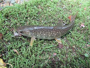 | 綺麗な岩魚が釣れた。 | この岩魚もいい引きをした。 |