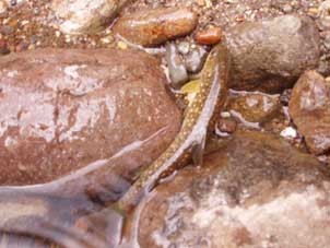 | 上の淵尻で飛び出した。 | また釣れた。ポイントには全部いるようだ。 |