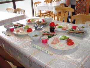 | 朝は大雨。釣りが出来ずまったりと過ごす。 | 朝食も豪華版でした。 |