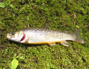 | このサイズが釣れれば、もう大満足。 | 最後に釣れた良型のイワナ。 |