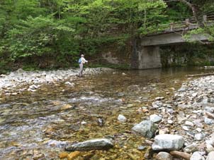 | この根ポイントはいつも釣れるのだが、今日はだめだった。 | NOBEさんのフライはラインが美しく流れる。 |