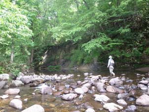 | すぐにイワナが釣れた。 | ひらり〜さんはフライフィッシィングで攻める。 |