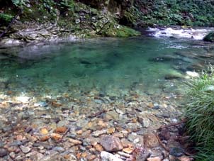 | 渓畔林がすばらしい。 | 大きな栃の木が見おろしている。 |