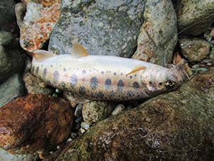 | いい型のイワナが釣れた。 | こんな感じのイワナ。 |