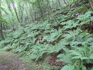 | 林道の最後を飾るシダの森。 | ダムの上は霧で何も見えなかった。 |
