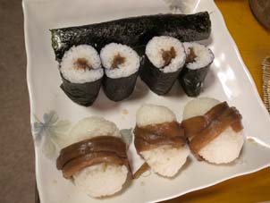 巻き寿司作り。この後、芋がらを巻く握り寿司も作ってくれた。