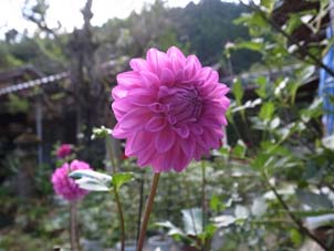 庭には自分で栽培しているダリアが咲いていた。畑にもダリアが。