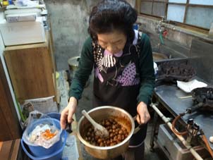 とが出来る。ガスの火を弱火にして特製味噌を加える。「味噌は目分量なんだぃね…」