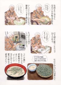 八十九歳の働きもんの手が自在にうどん粉をこね、緑色の塊が出来上がる。「本当はひ