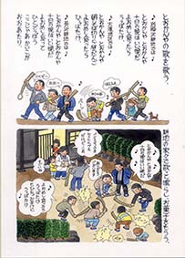 とおかんやの歌がある。この歌に合わせてみんなでワラ鉄砲を打つのだが、耕地によっ