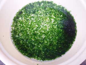 大きく成長していたので、包丁で刻んで、均一になるように漉いた。包丁で刻んだものと