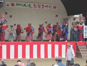 | 偶然、ホームページで知り合った人に会って大感激。 | お祭りの始まりは大滝の太鼓演奏から。 |
