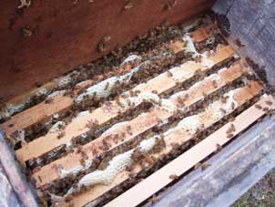 巣箱の中をのぞくと巣板がビッシリと詰められている。