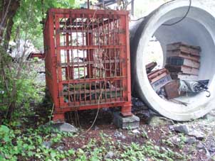 蜂場の横に置いてある熊の檻。実際に使うこともあると言う。